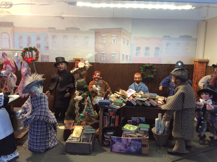 This scene appeals to my sense of humor. First of all having characters from two separate books is fun, then having the famous detective's watch stolen by the lowly Artful Dodger tickles me. I made the Sherlock Holmes doll when I came across this tiny houndstooth check fabric. The Artful Dodger and Fagan came later, Dodger is a favourite Dicken's character. |